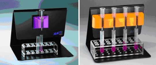 MACS分选器由永久性磁铁和支架构成。与分选柱一起组成高强度的梯度磁场。根据应用范围分为研究用和临床应用的MACS分选器,根据操作方式分为手动和自动分选器。